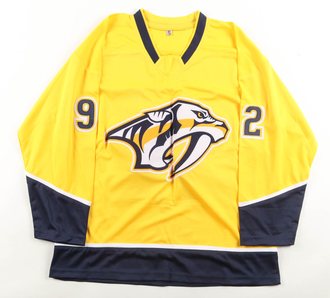 Custom jersey. Everything sewn on, size XL. Hand-signed by Ryan Johansen.