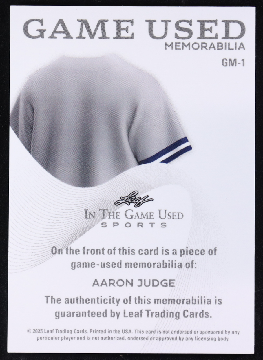 Aaron Judge 2025 Leaf in the Game Used Game-Used Memorabilia Blue Holo #GM1 #47/50