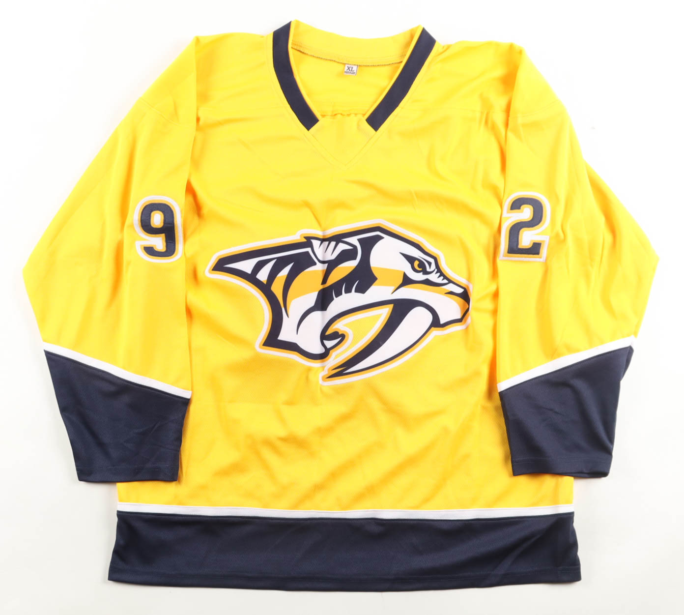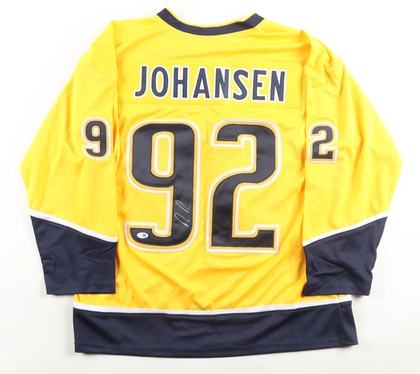 Custom jersey. Everything sewn on, size XL. Hand-signed by Ryan Johansen.