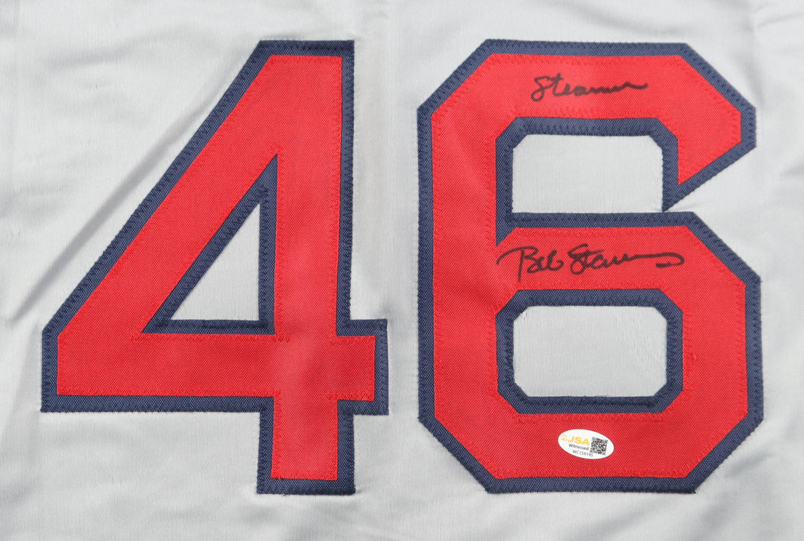 Custom jersey with everything sewn on, size XL. Hand-signed and inscribed by Bob Stanley.