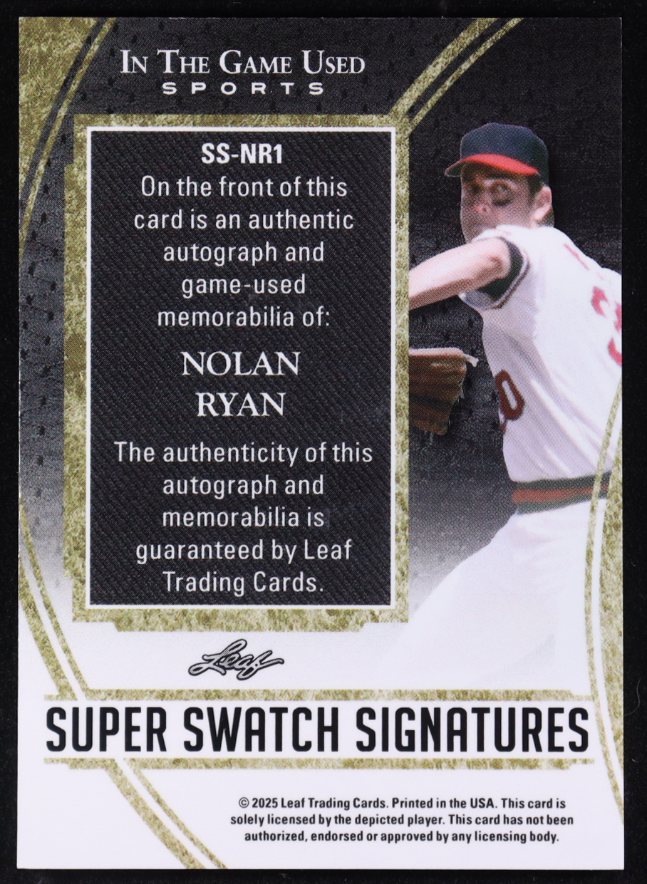 Nolan Ryan 2025 Leaf in the Game Used Super Swatch Signatures Jumbo Game-Used Memorabilia Blue Holo #SS-NR1 #15/15