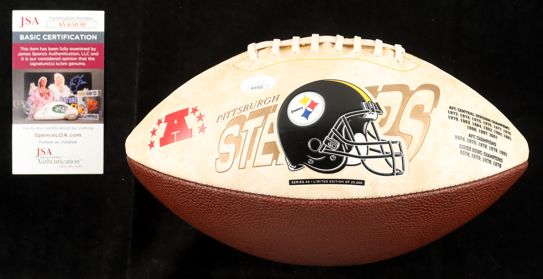 Pittsburgh Steelers Commemorative logo football has been hand-signed by Jerome Bettis (Pittsburgh Steelers, HOF). Please refer to photos regarding the condition of the item.