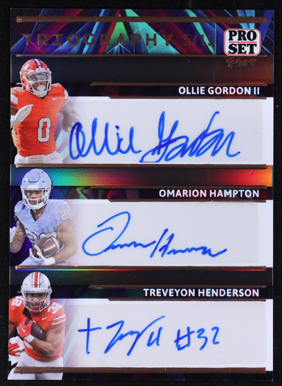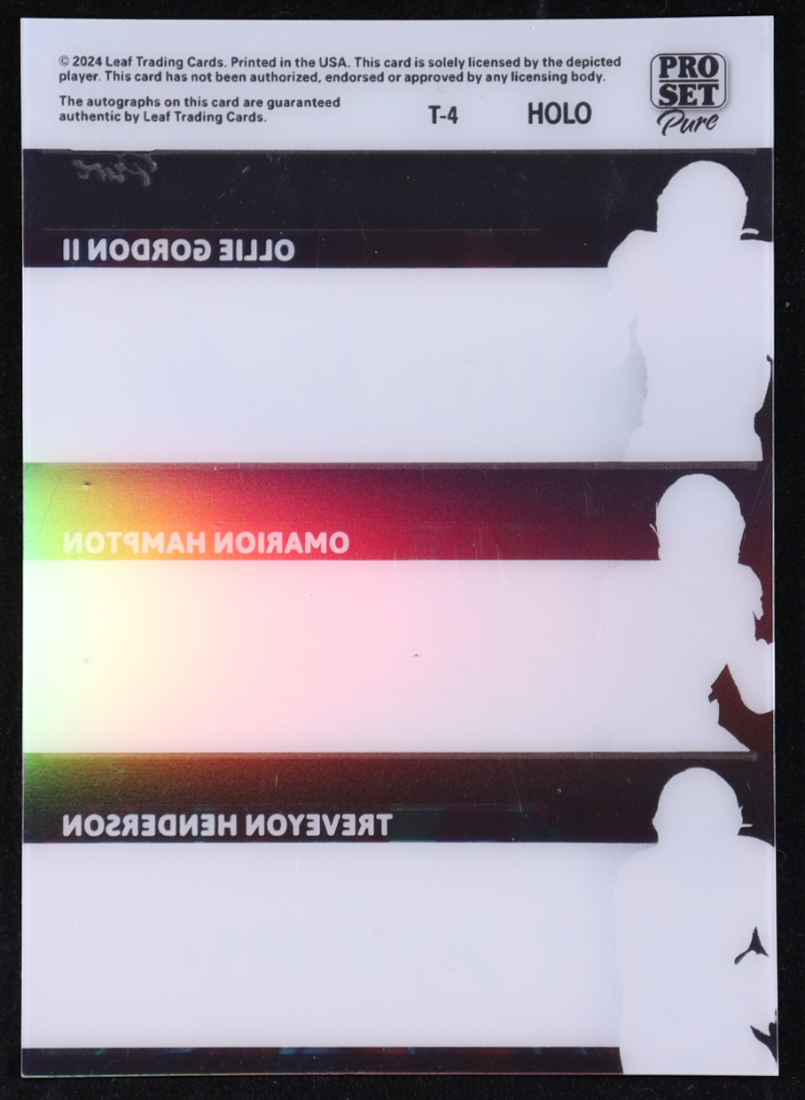 Ollie Gordon II / Omarion Hampton / Treveyon Henderson 2024 Leaf Pro Set Pure Triography Autograph Pink Holo #T4 #5/15