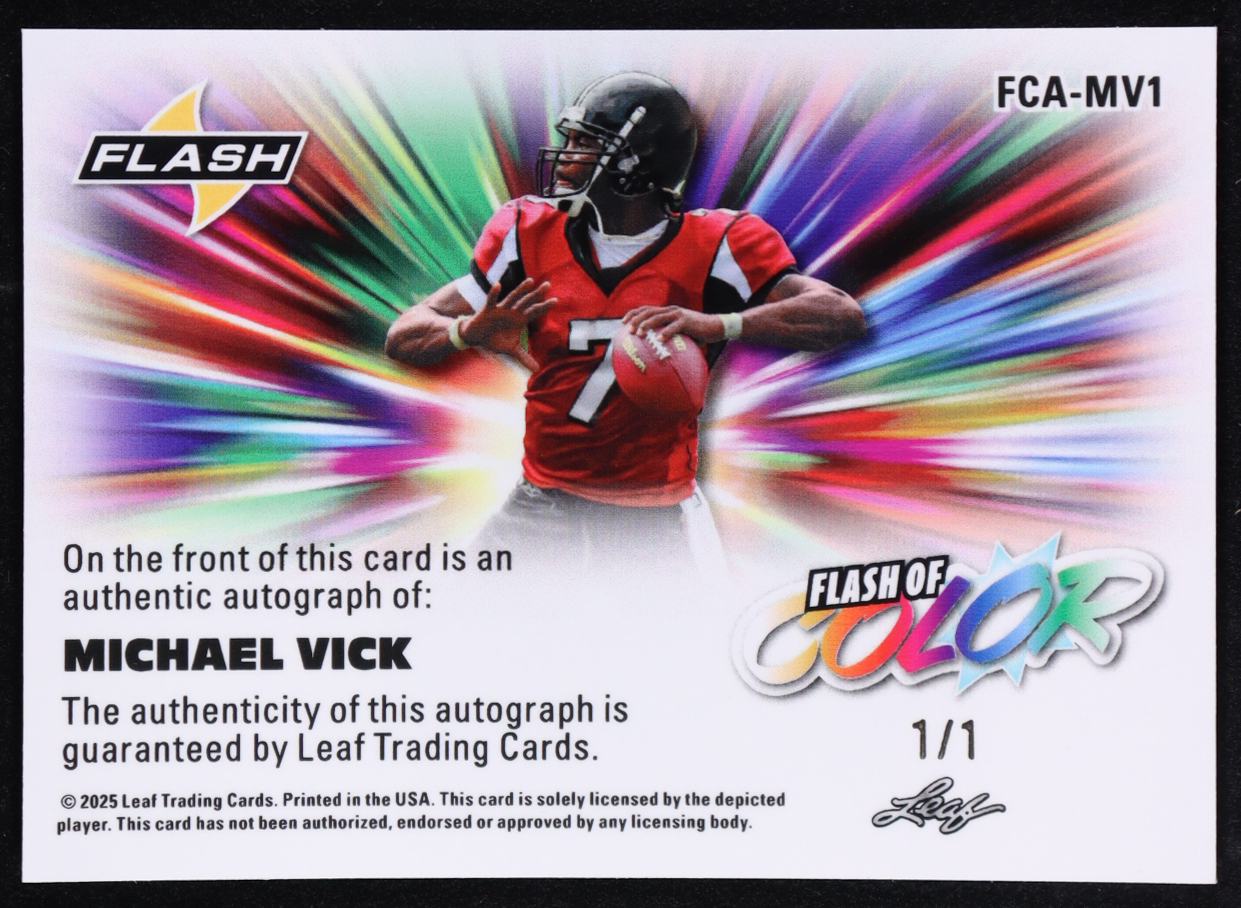 Michael Vick 2025 Leaf Eclectic Signature Series Flash of Color Rainbow Sparkle #FCA-MV1 #1/1