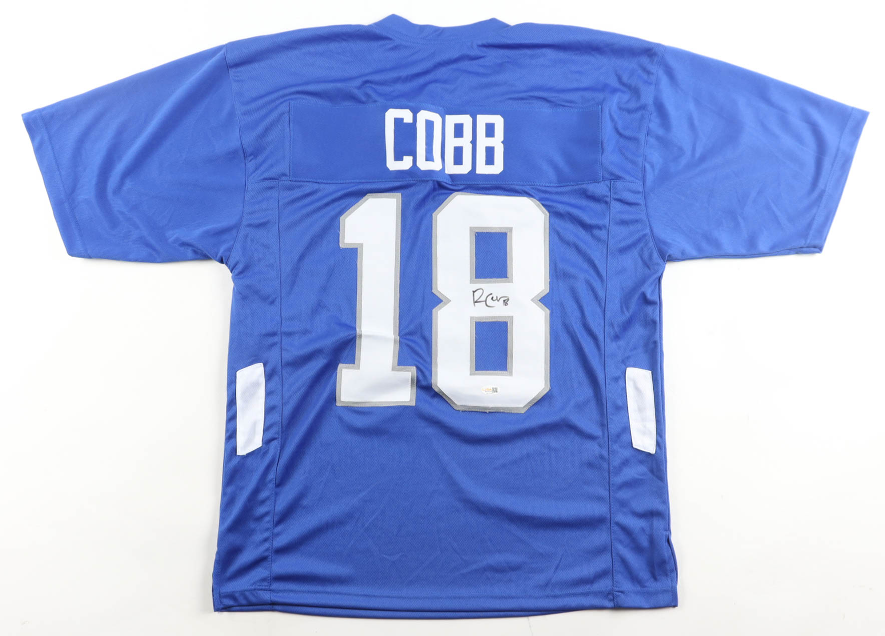 Custom jersey with everything sewn on, size XL. Hand signed by Randall Cobb (Kentucky Wildcats).