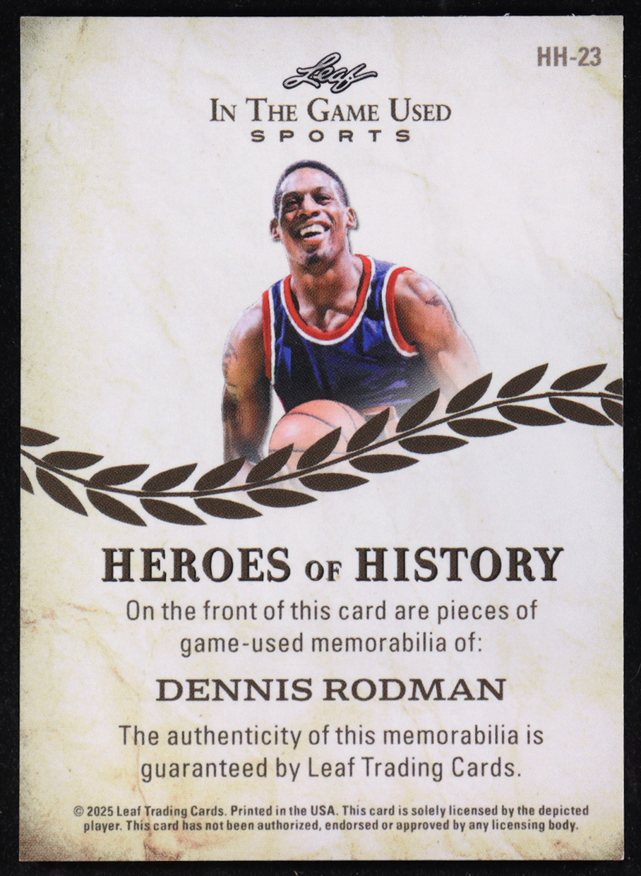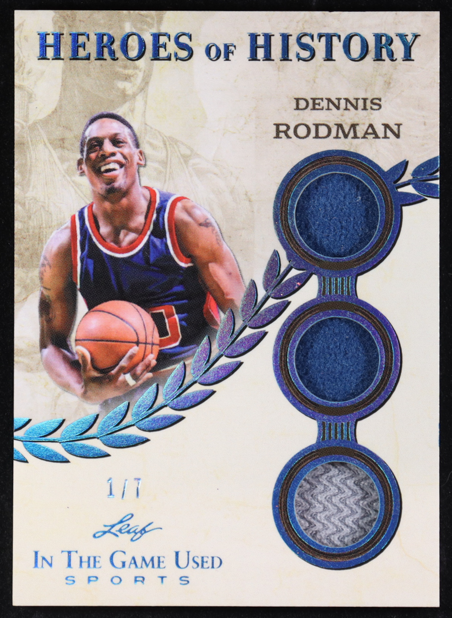 Dennis Rodman 2025 Leaf ITG Used Sports Heroes Of History Triple Relic Blue Holo #HH23 #1/7