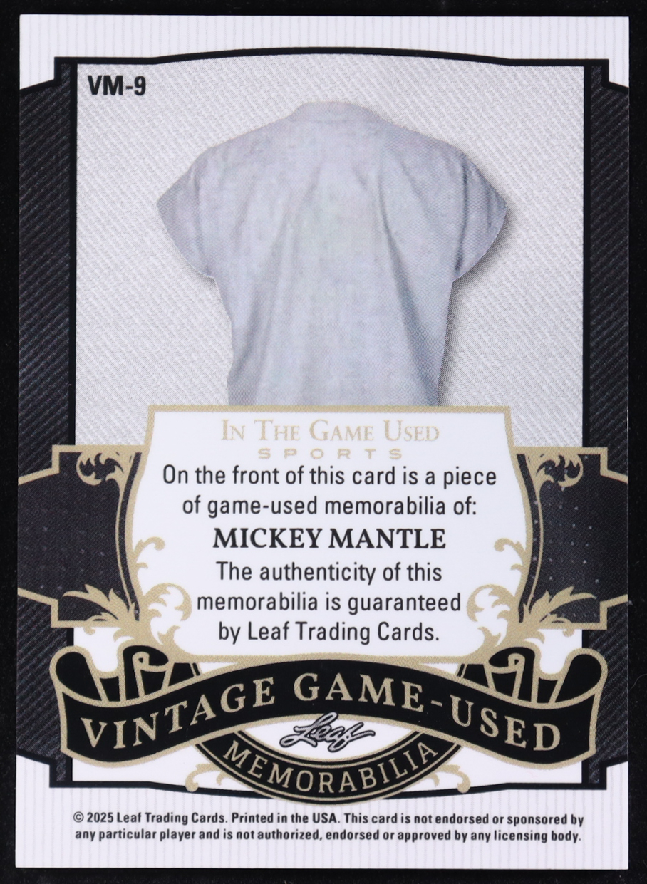Mickey Mantle 2025 Leaf in the Game Used Vintage Game-Used Memorabilia Red Holo #VM9 #2/3