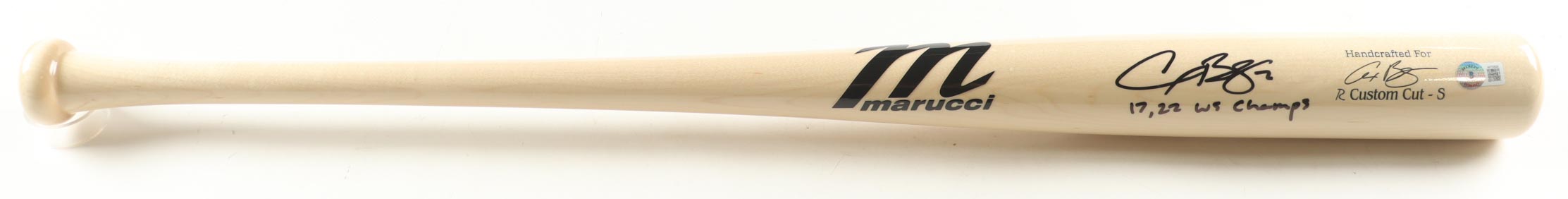 Marucci R Custom Cut baseball bat has been hand-signed and inscribed by Alex Bregman (Houston Astros).
