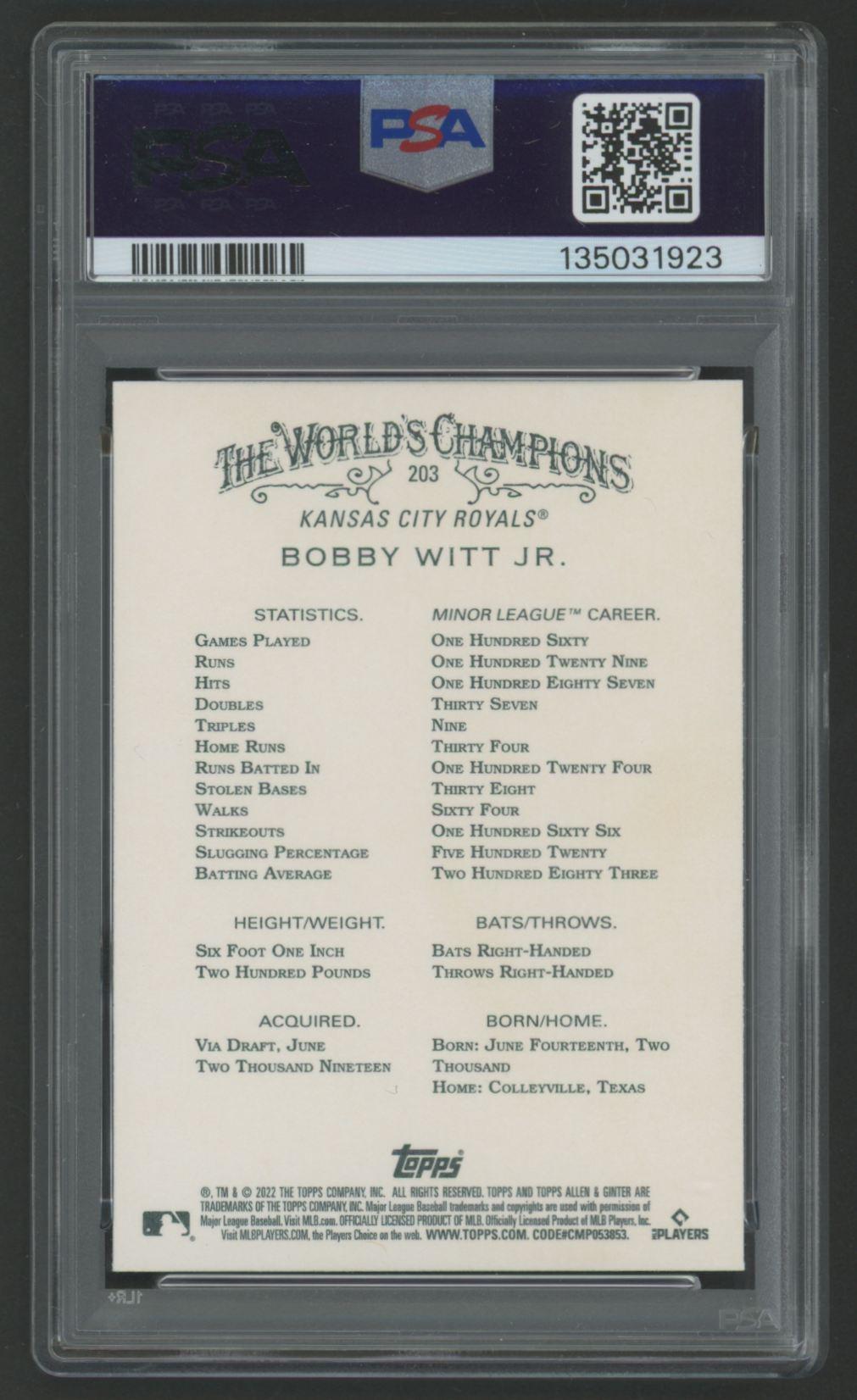 Bobby Witt Jr. 2022 Topps Allen and Ginter #203 RC (PSA 10)