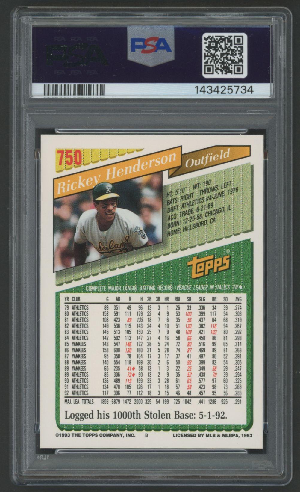 Rickey Henderson 1993 Topps Marlins Inaugural #750 (PSA 10)