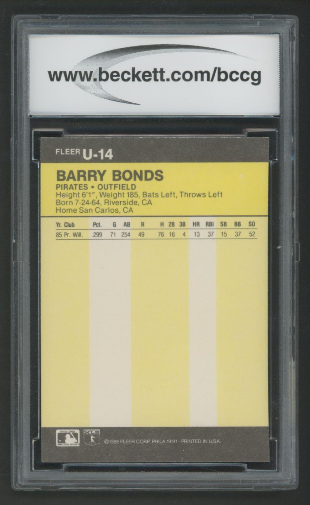 Barry Bonds 1986 Fleer Update #U14 XRC (BCCG 10)