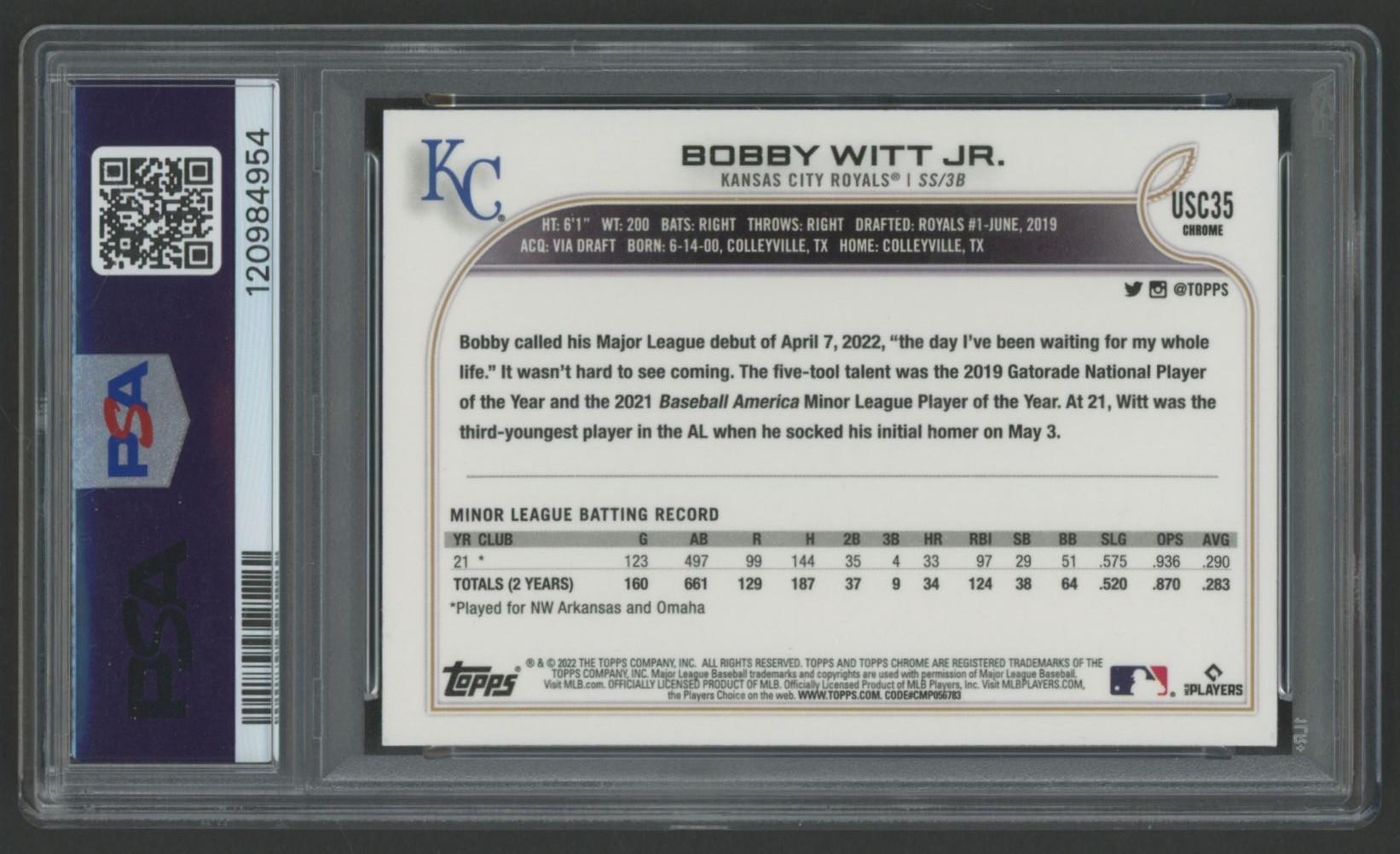 Bobby Witt Jr. 2022 Topps Chrome Update #USC35 (PSA 9)