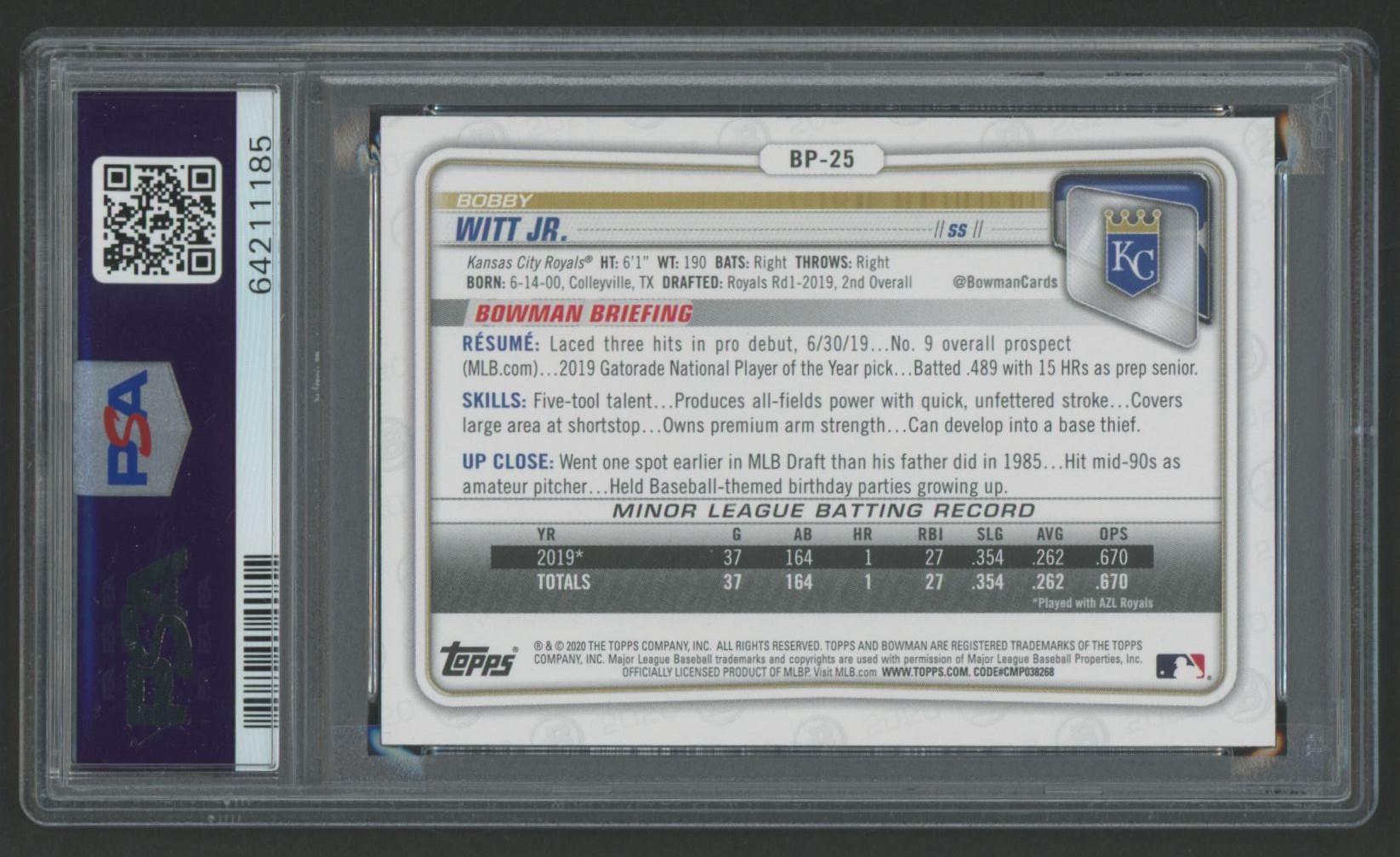 Bobby Witt Jr. 2020 Bowman Prospects #BP25 (PSA 10)