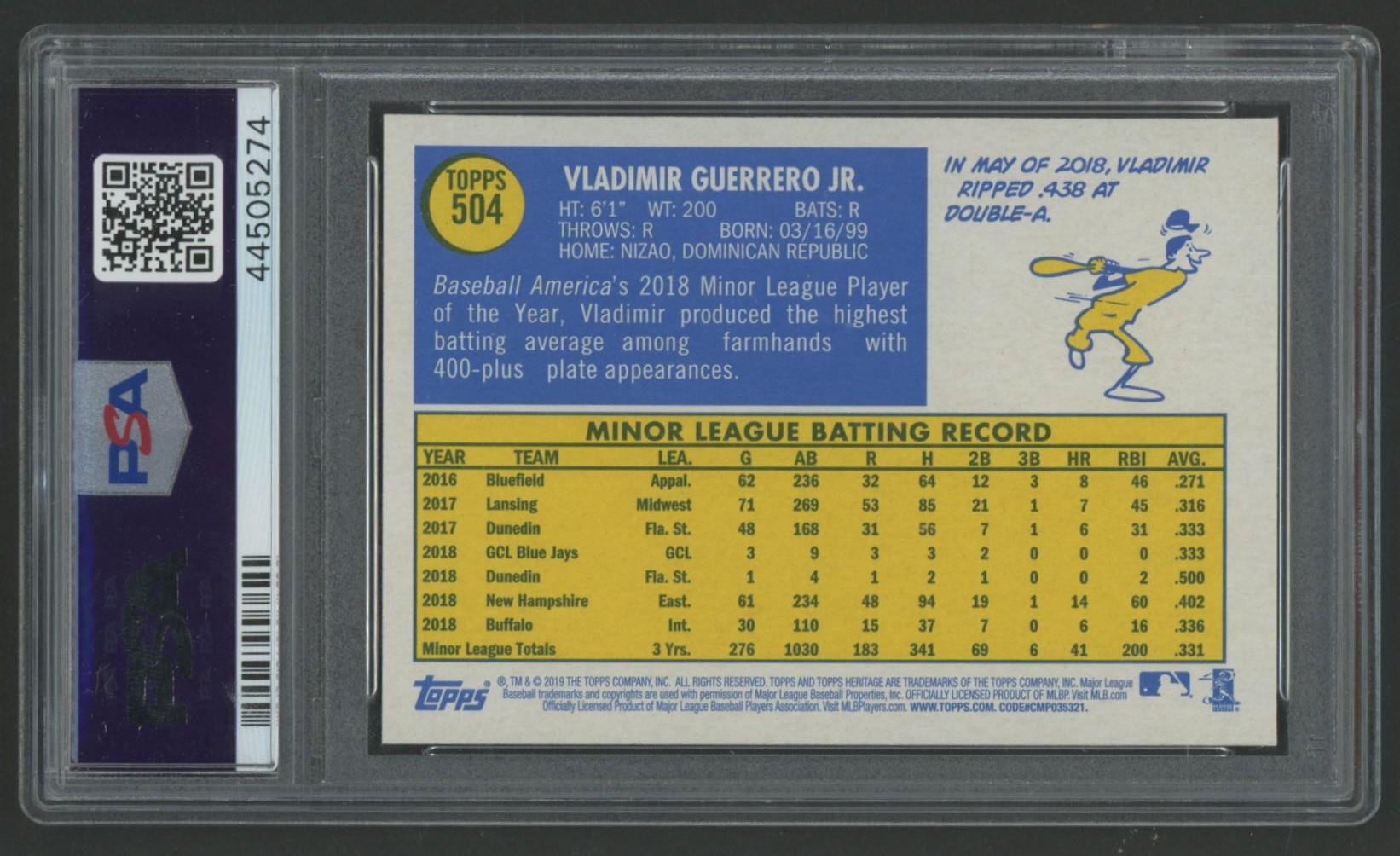 Vladimir Guerrero Jr. 2019 Topps Heritage #504 (PSA 10)