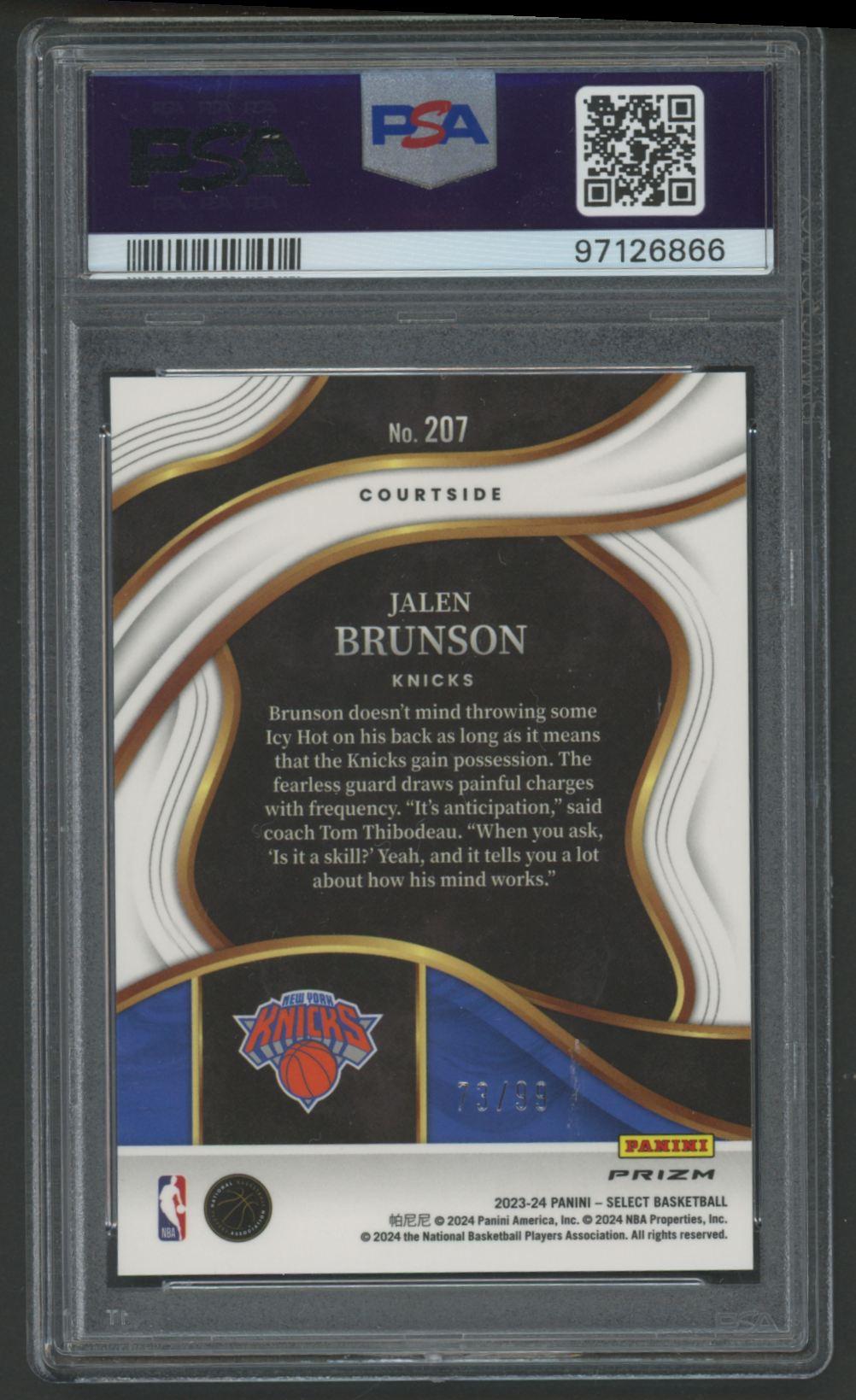 Jalen Brunson 2023 Select Blue Tectonic #207 #73/99 (PSA 10)