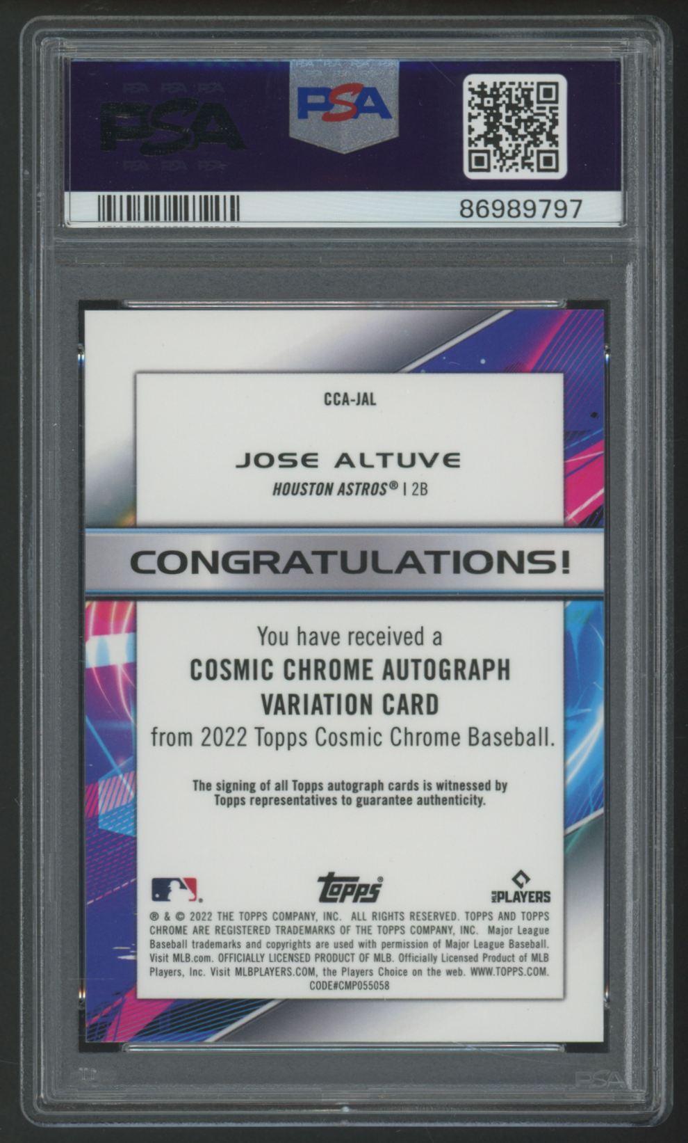 Jose Altuve 2022 Topps Chrome Cosmic Autograph #CCAJAL (PSA 8)