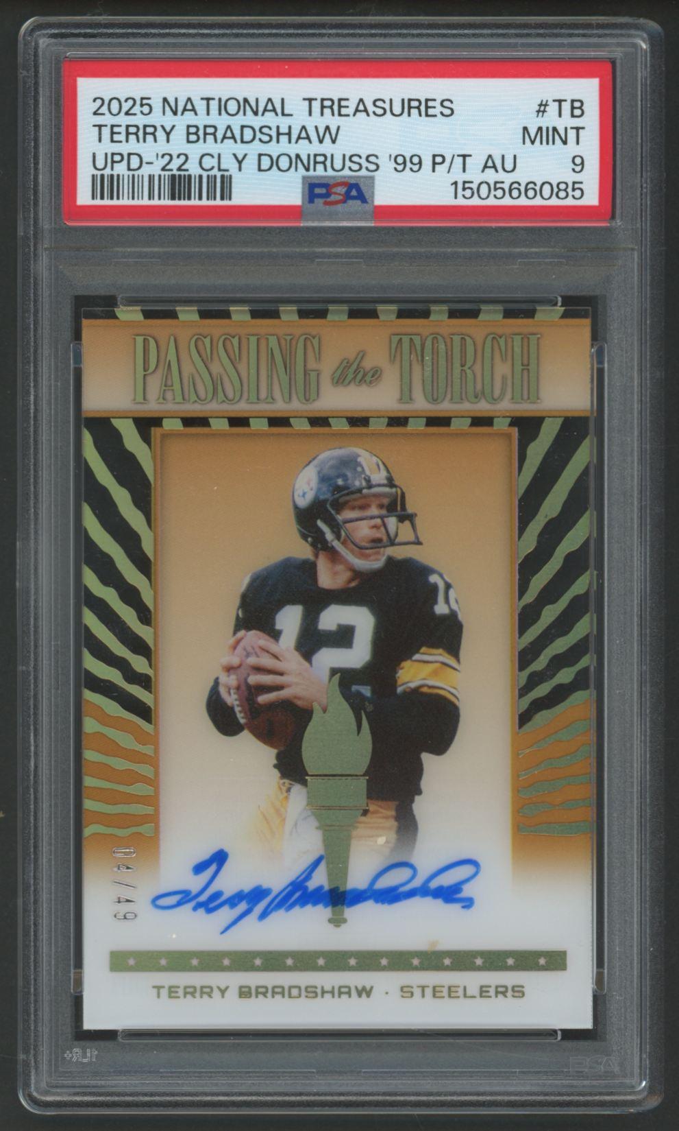 Terry Bradshaw 2025 National Treasures Update / 2022 Clearly Donruss Passing the Torch Autographs #PTTB #4/49 (PSA 9)