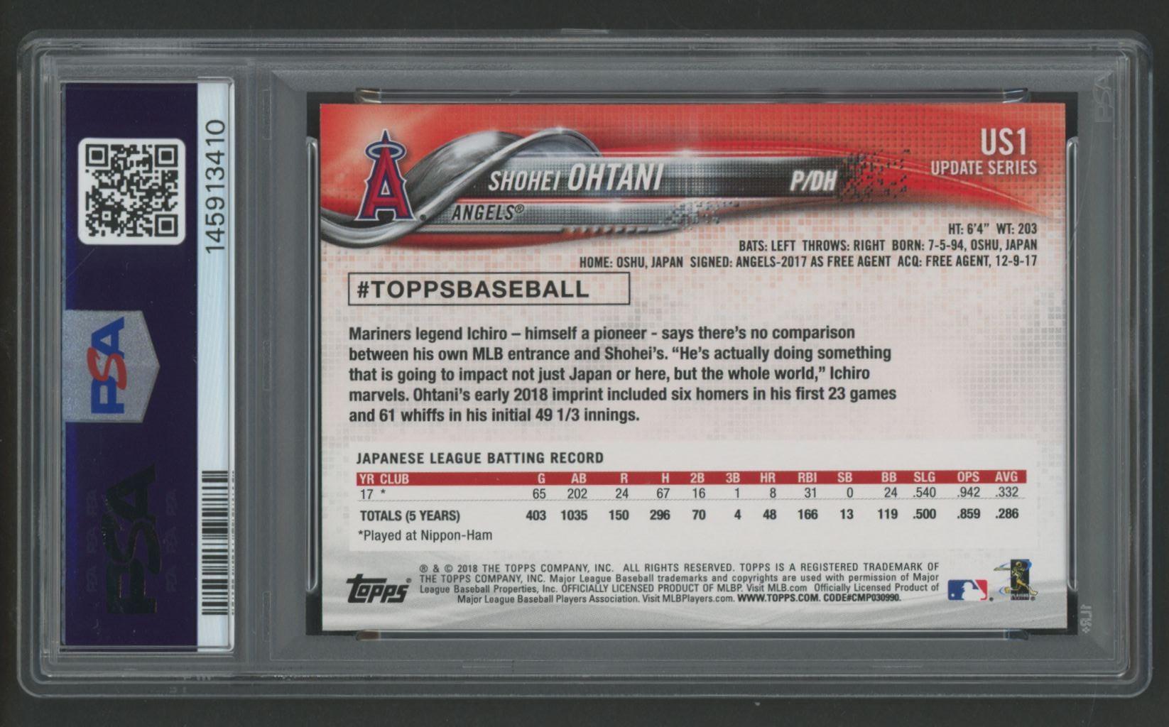 Shohei Ohtani 2018 Topps Update #US1 RC (PSA 9)