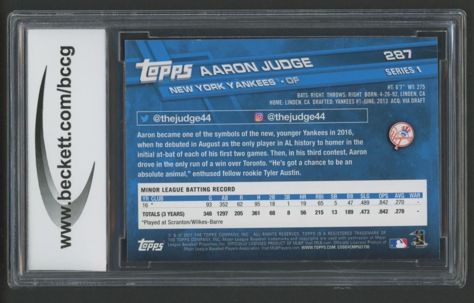 Aaron Judge 2017 Topps #287A RC (BCCG 10)