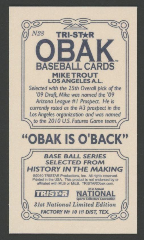 Mike Trout 2010 TRISTAR Obak National Convention VIP Mini #N28 RC