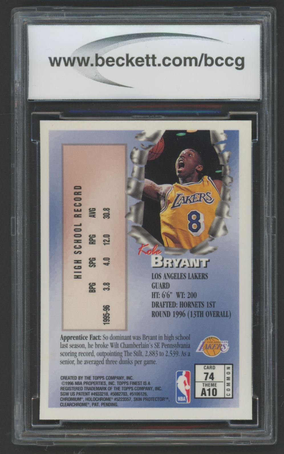 Kobe Bryant 1996-97 Finest #74 RC (BCCG 10)