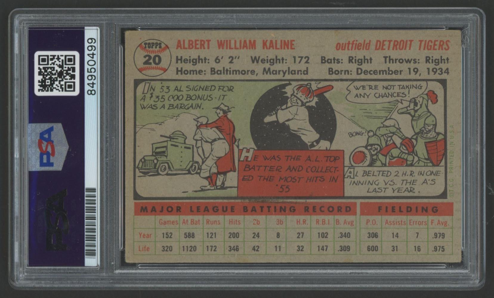 Al Kaline Signed 1956 Topps #20 (PSA)