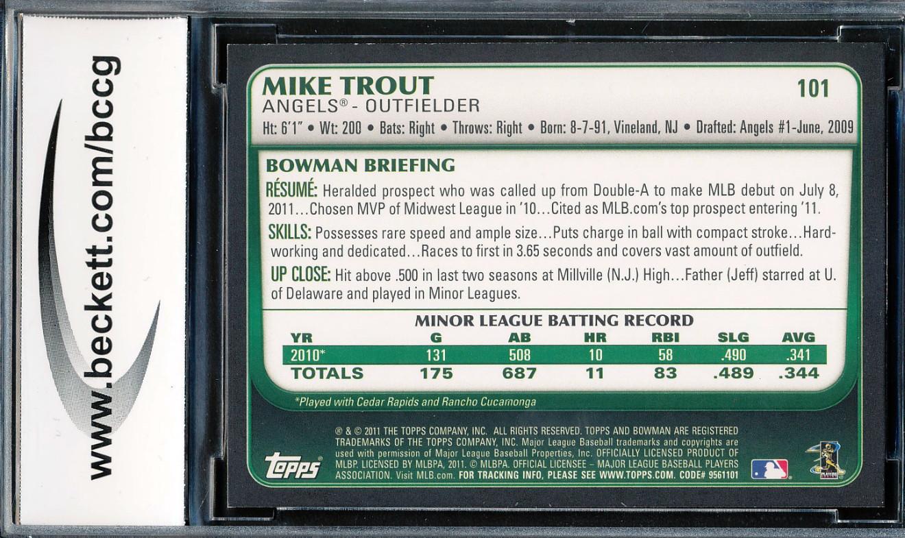 Mike Trout 2011 Bowman Draft #101 RC (BCCG 10)