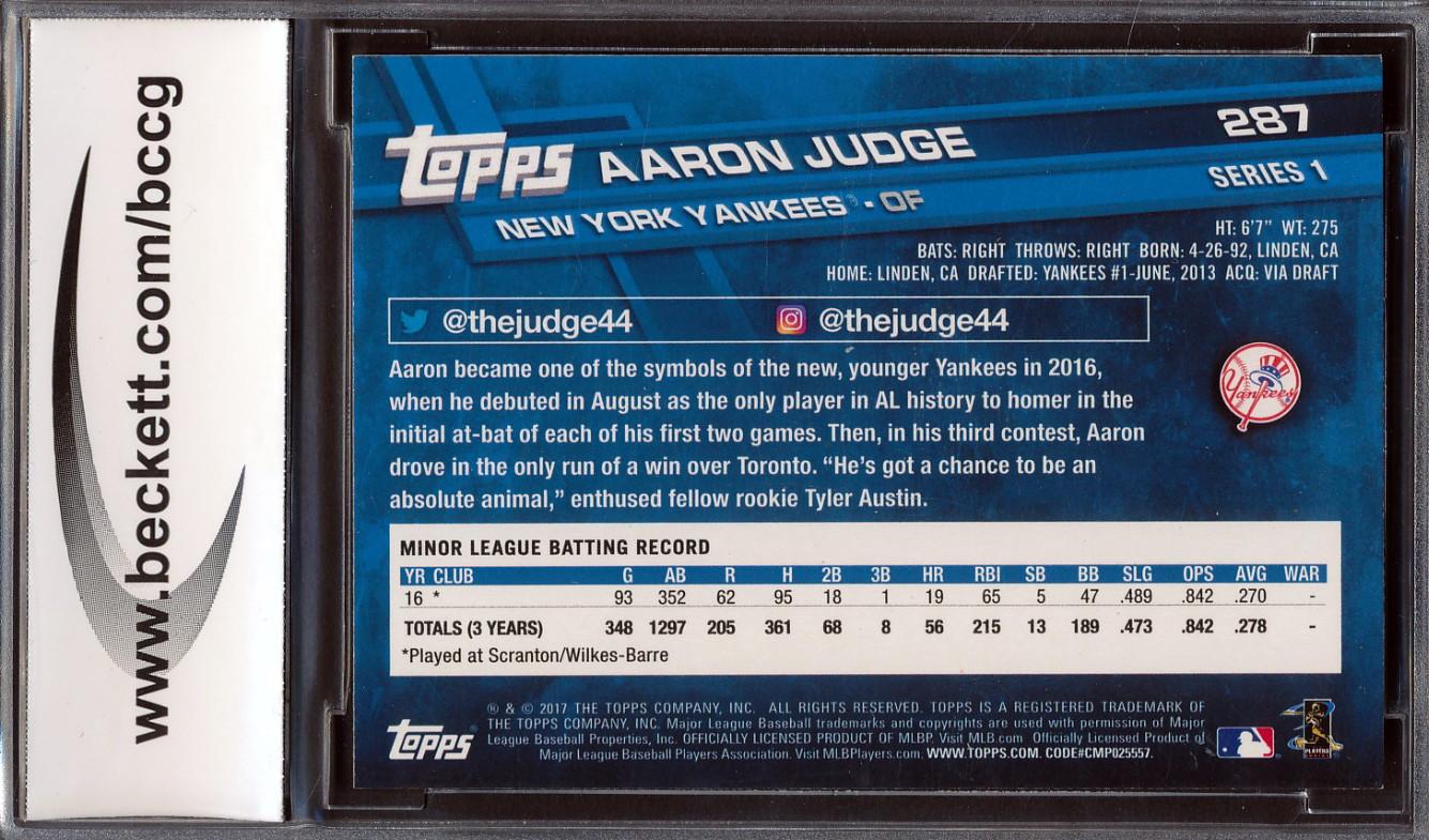 Aaron Judge 2017 Topps Arms Over Railing #287C (BCCG 10)