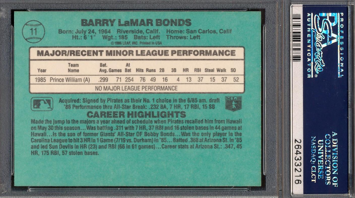 Barry Bonds 1986 Donruss Rookies #11 XRC (PSA 9)