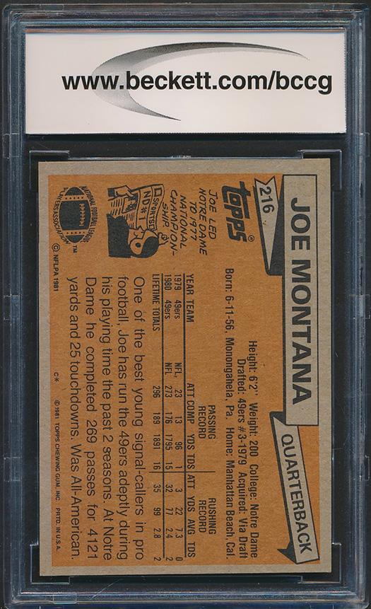 Joe Montana 1981 Topps #216 RC (BCCG 9)