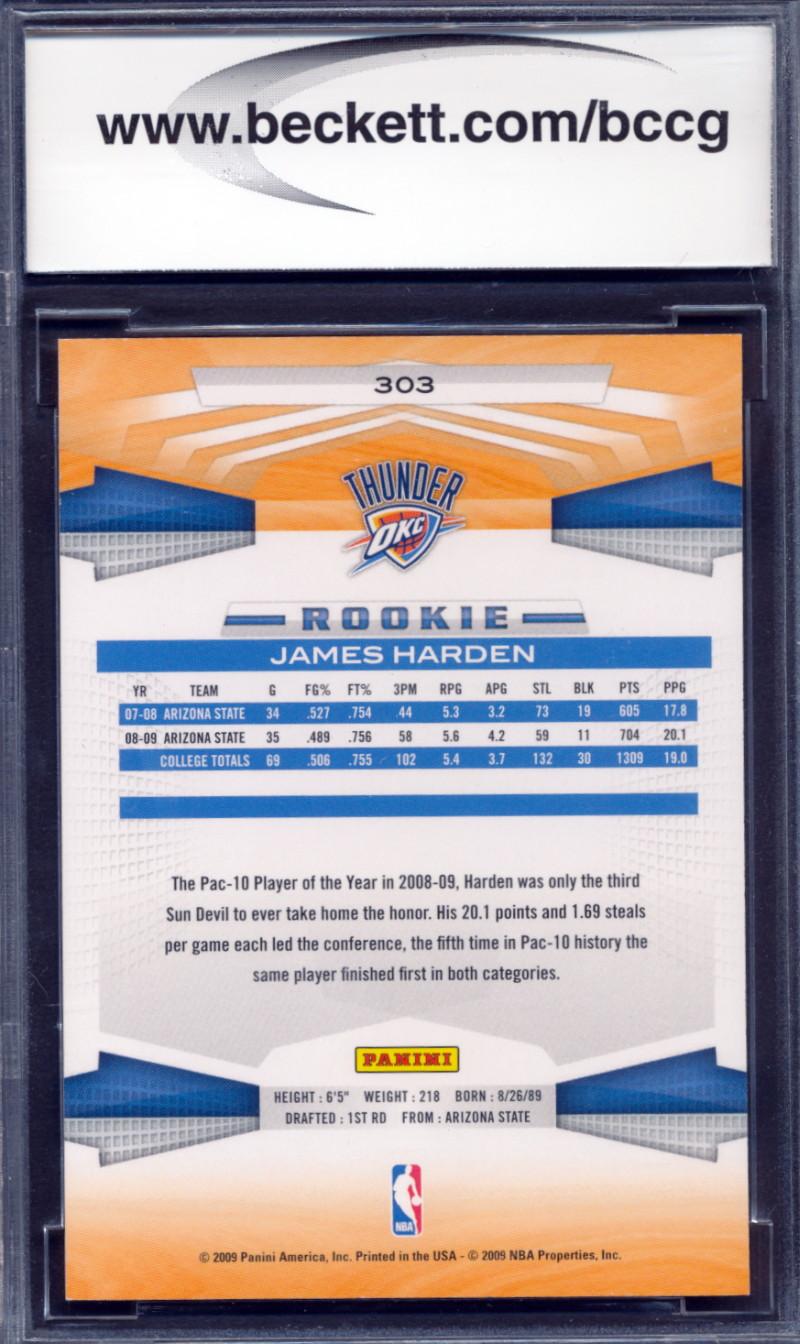 James Harden 2009-10 Panini #303 RC (BCCG 10)