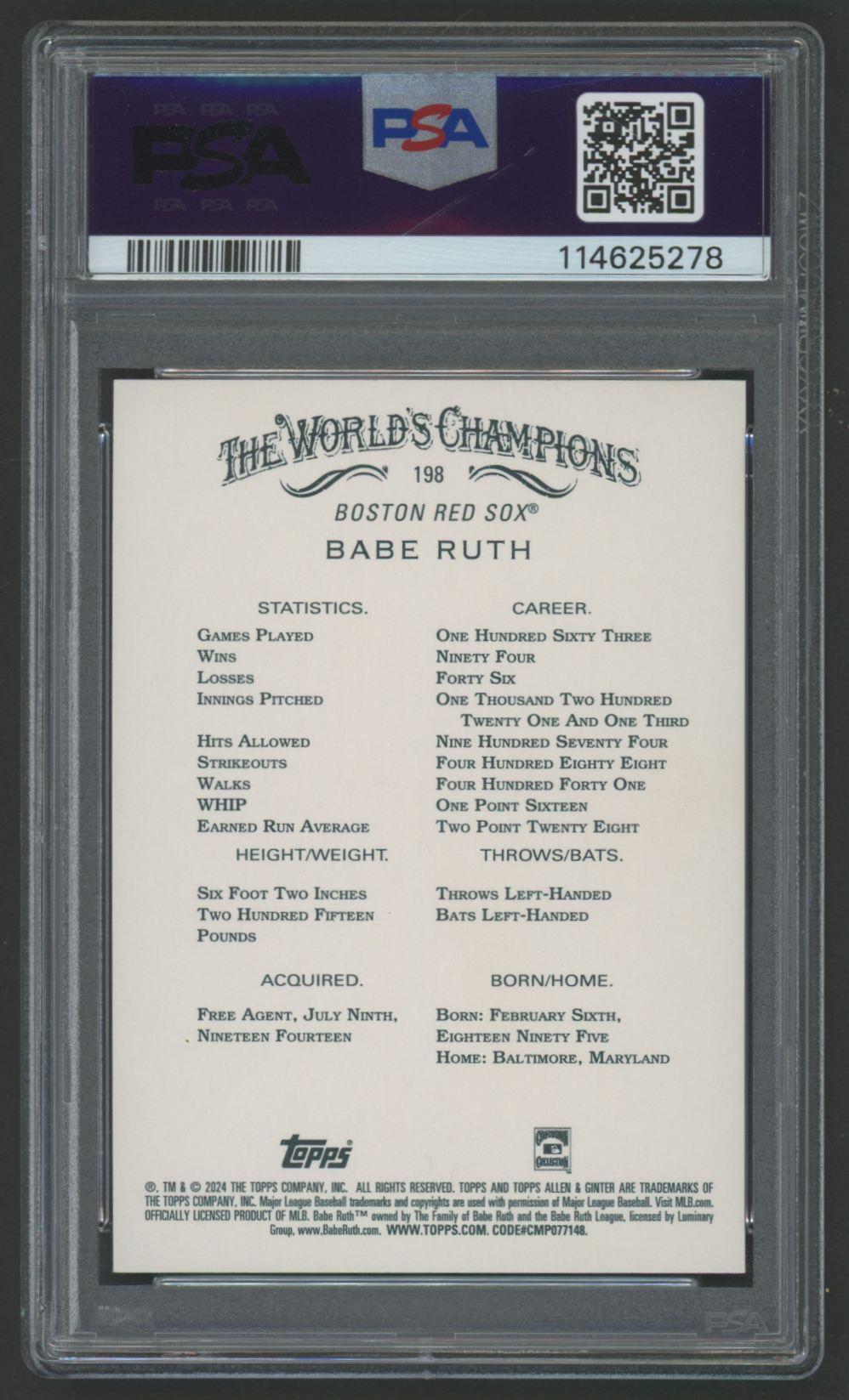 Babe Ruth 2024 Allen & Ginter Silver Portrait Hot Box #198 (PSA 10)