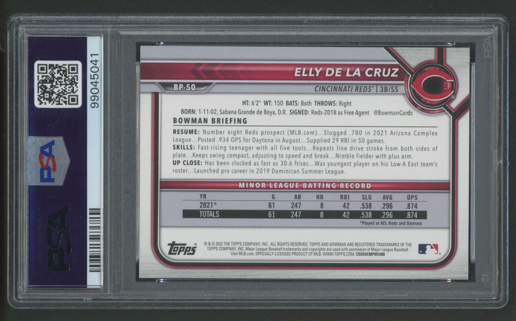 Elly De La Cruz 2022 Bowman Prospects #BP50 RC (PSA 10)