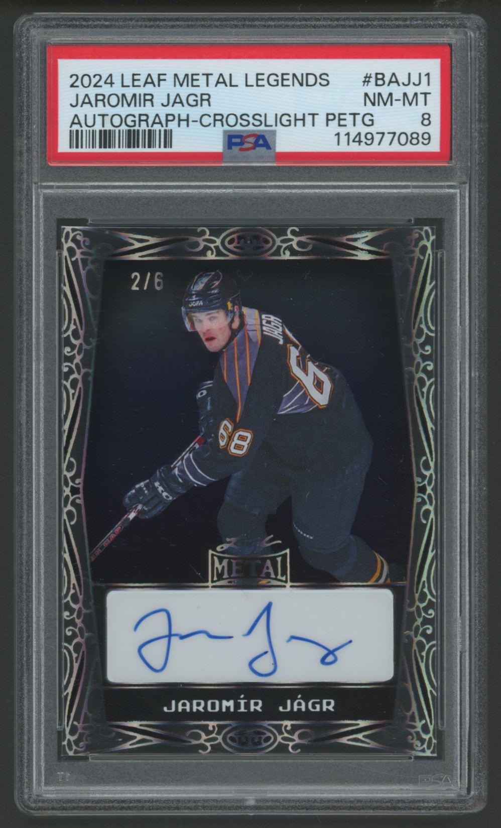 Jaromir Jagr 2024 Leaf Metal Legends Autograph Crosslight PETG #BAJJ1 #2/6 (PSA 8)