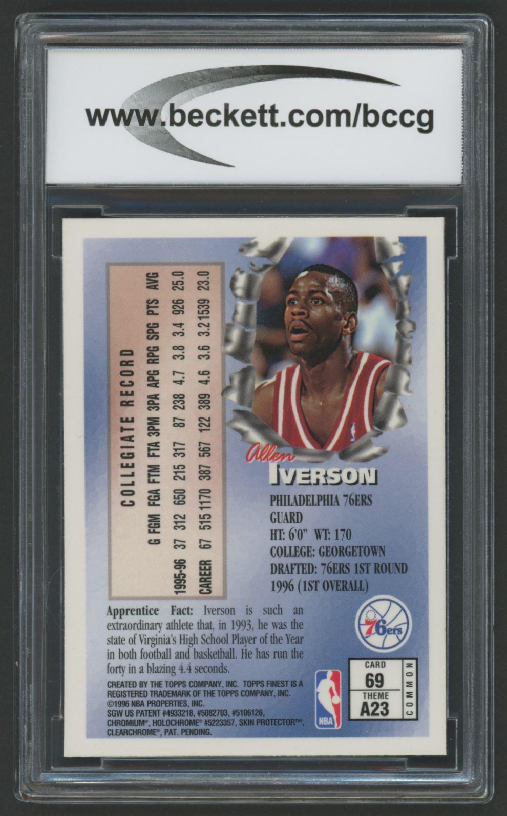 Allen Iverson 1996-97 Topps Finest #69 B RC (BCCG 10)