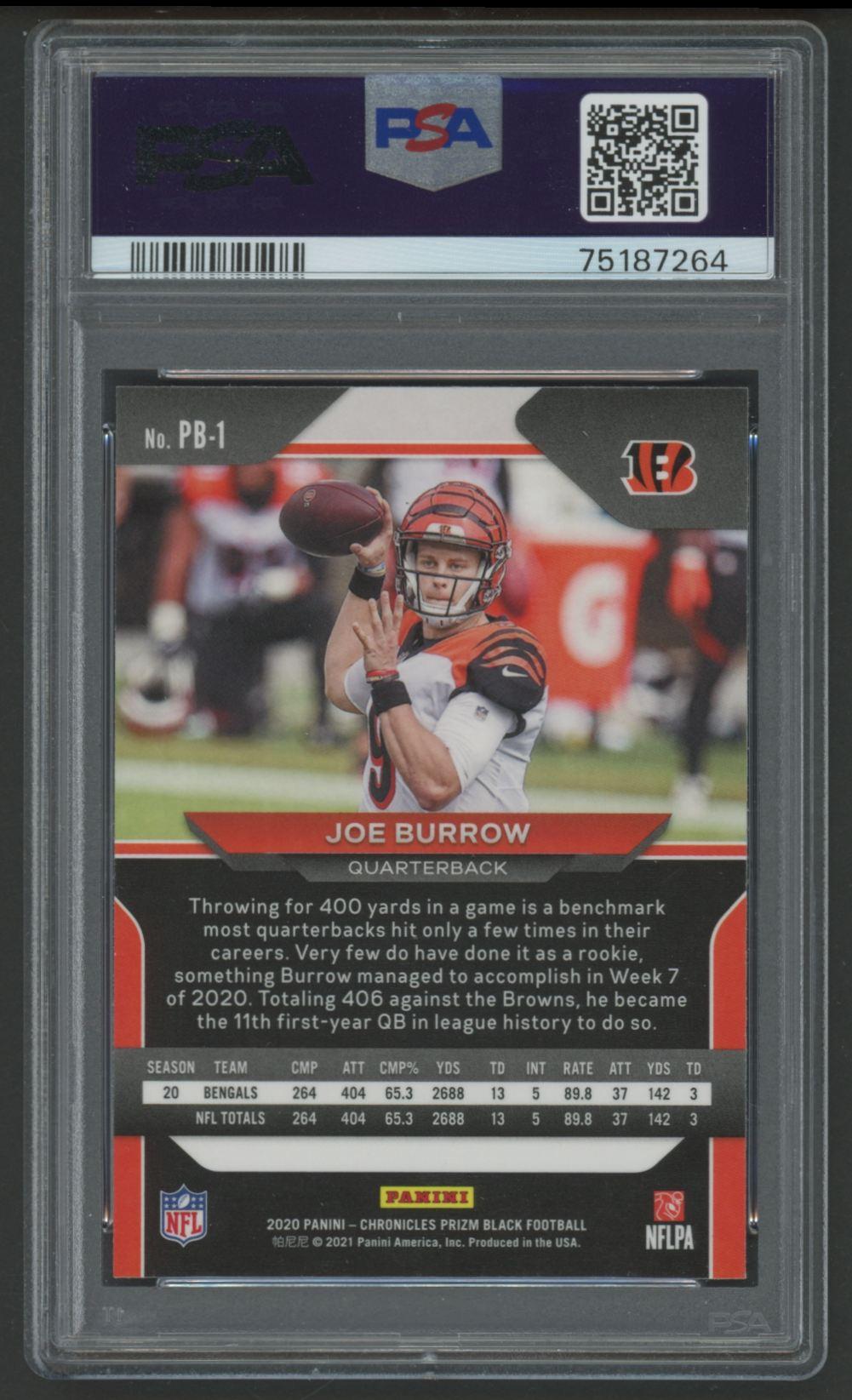 Joe Burrow 2020 Panini Chronicles Prizm Black #PB1 RC (PSA 9)