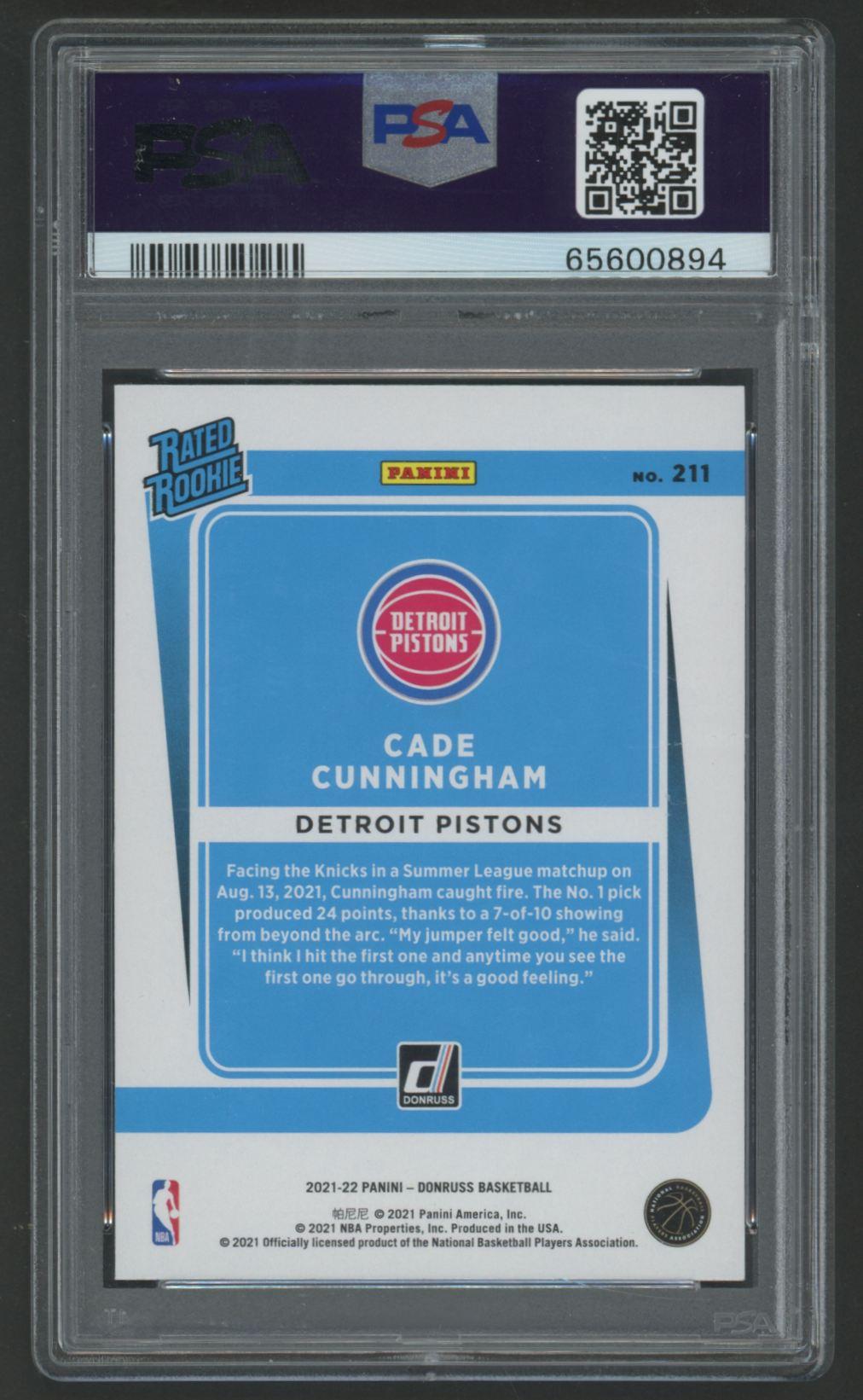 Cade Cunningham 2021-22 Donruss #211 RR RC (PSA 10)