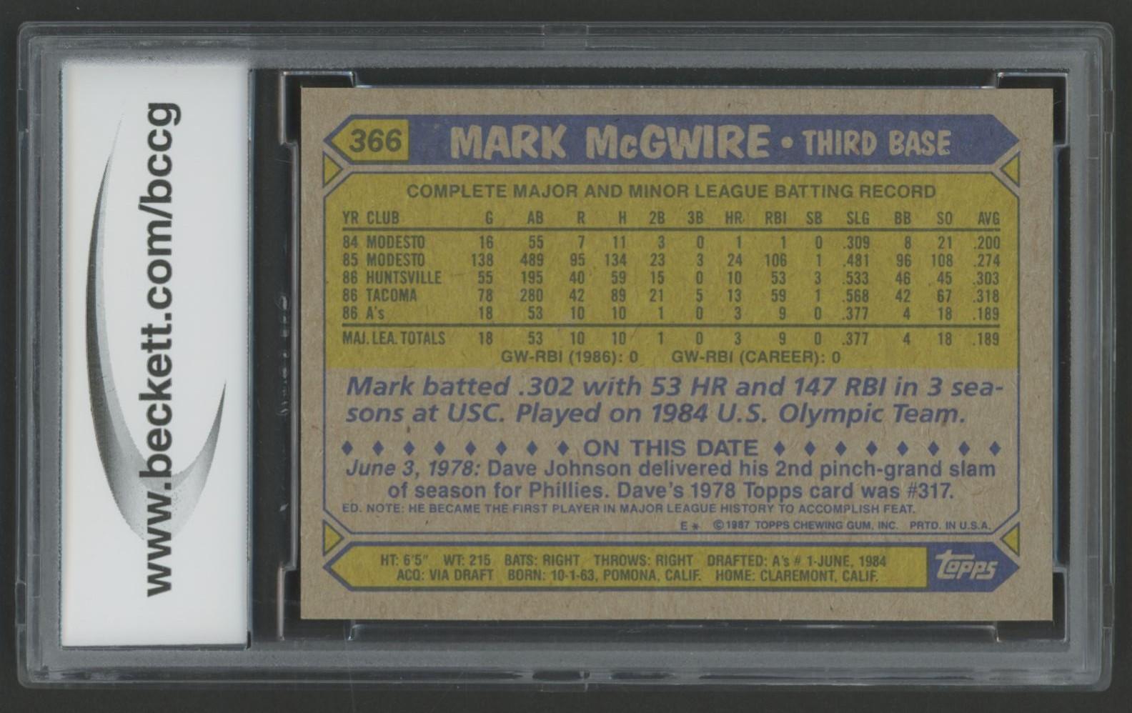 Mark McGwire 1987 Topps #366 (BCCG 10)