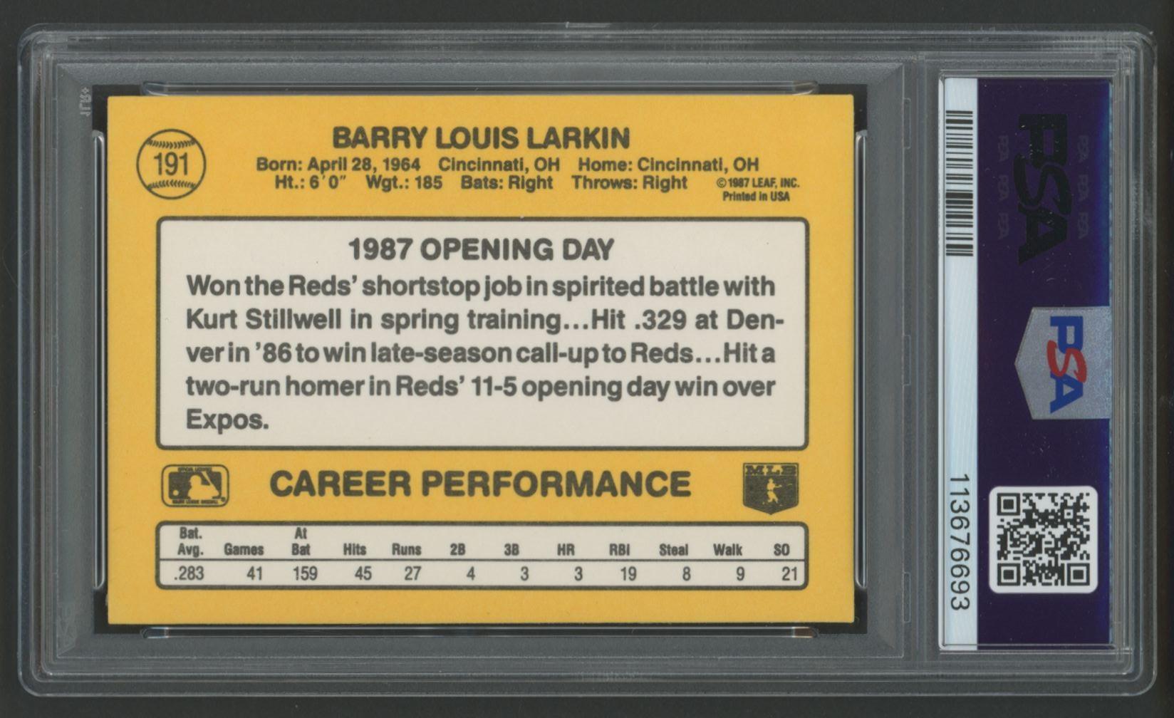 Barry Larkin Signed 1987 Donruss Opening Day #191 (PSA 8)