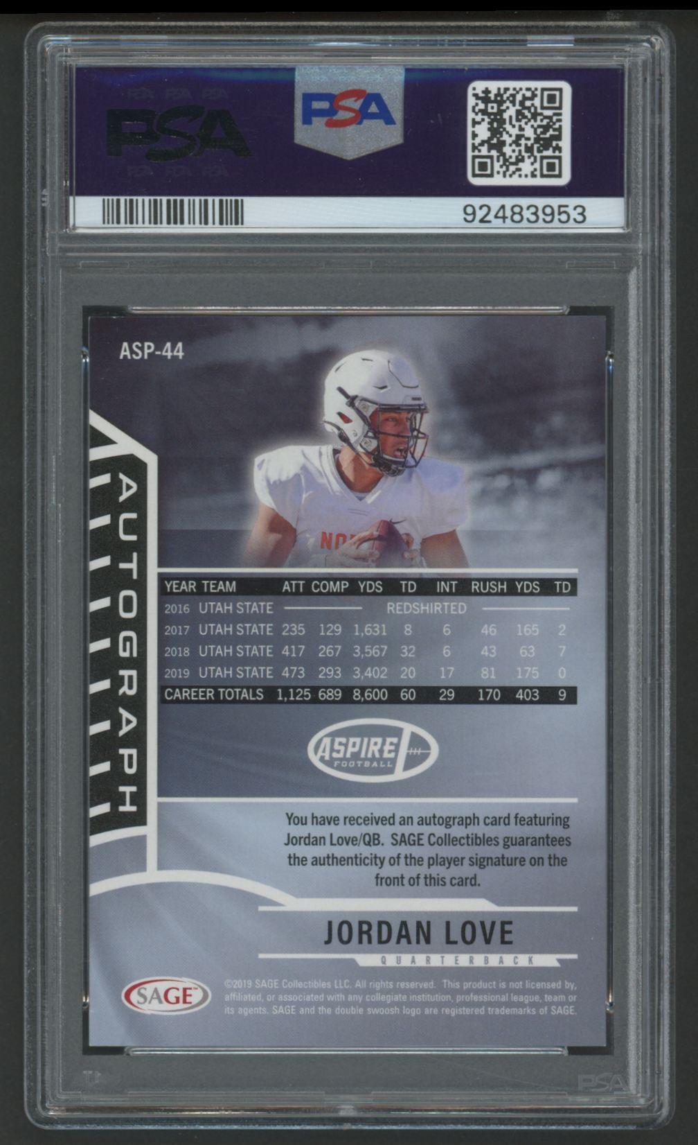 Jordan Love 2020 Sage Aspire Autograph Bronze #ASP44 (PSA 9)
