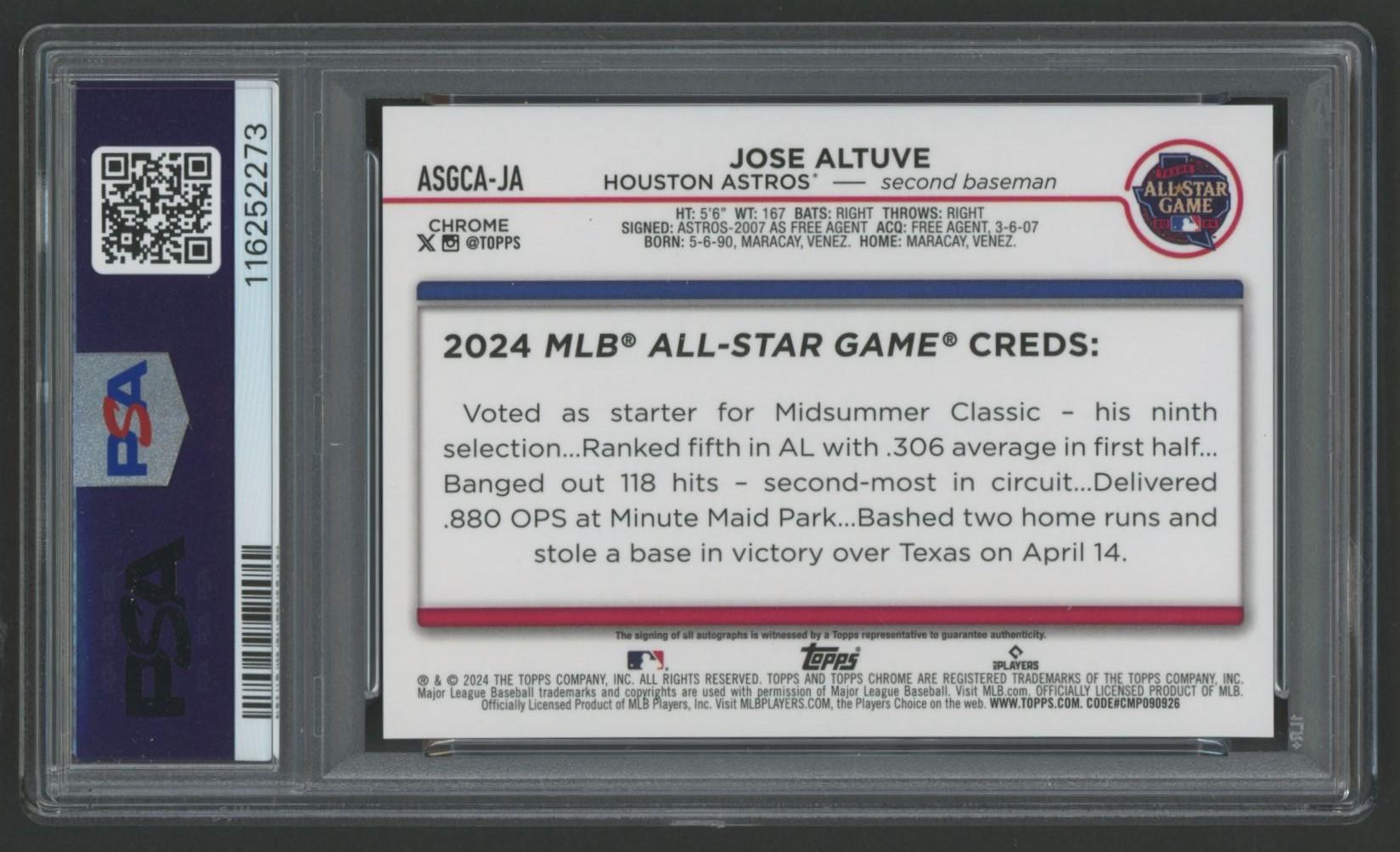 Jose Altuve 2024 Topps Chrome Update '24 All-Star Game Autographs #ASGCAJA (PSA 10)