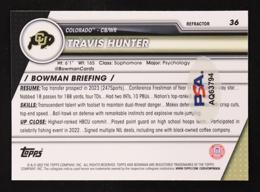 Travis Hunter Signed 2023 Bowman 1st Chrome University #36 (PSA)