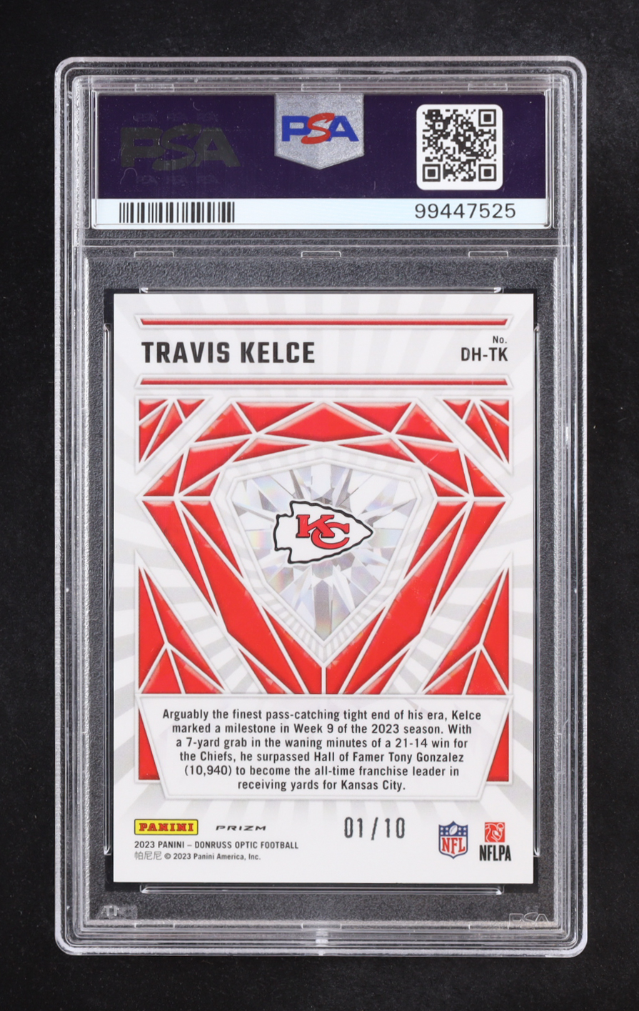 Travis Kelce 2023 Donruss Optic Diamond Hands Gold #9 #01/10 (PSA 10)