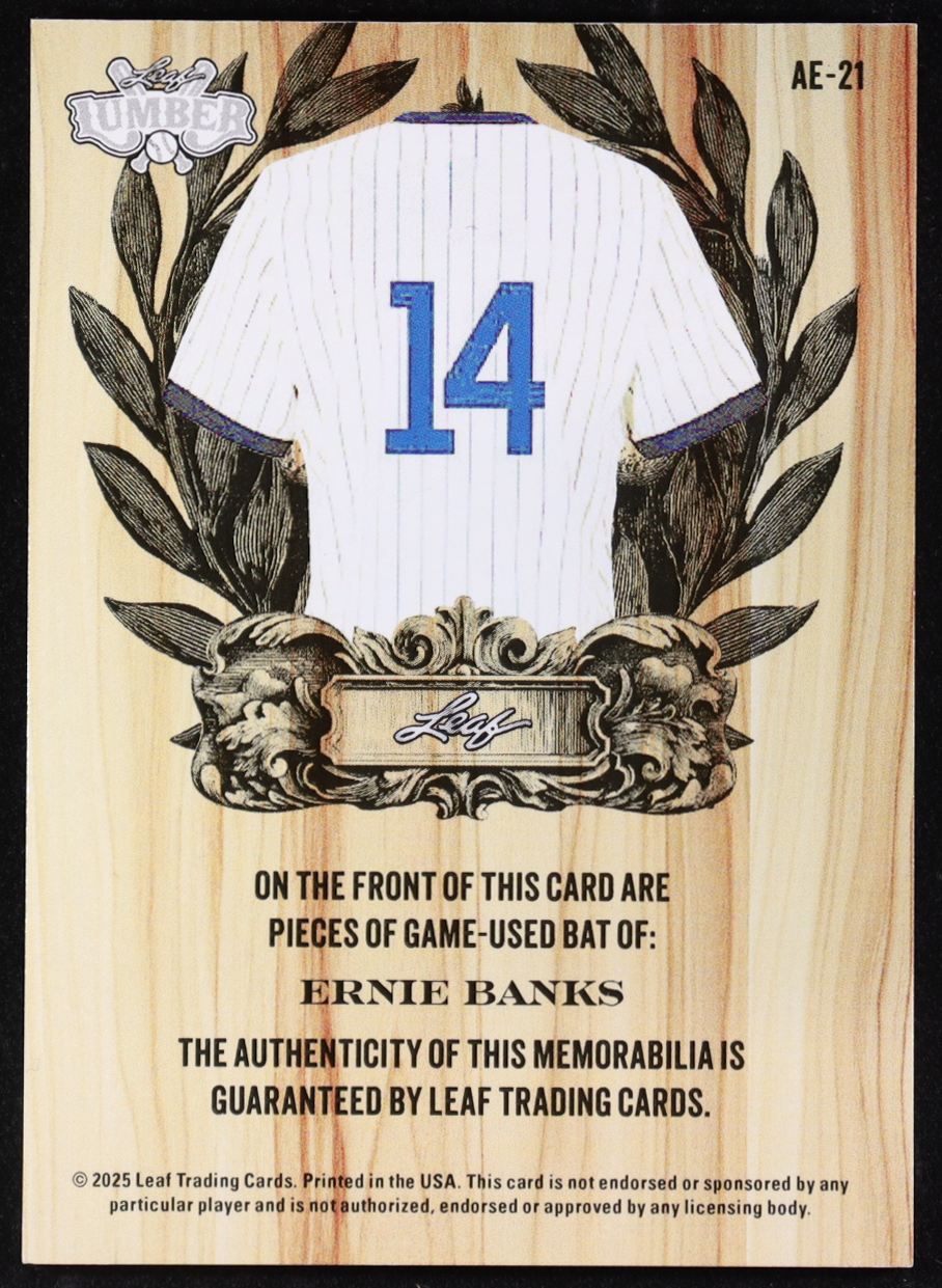 Ernie Banks 2025 Leaf Lumber All-Time Enshrined Red Dual Game-Used Bat Relic #AE-21 #3/4