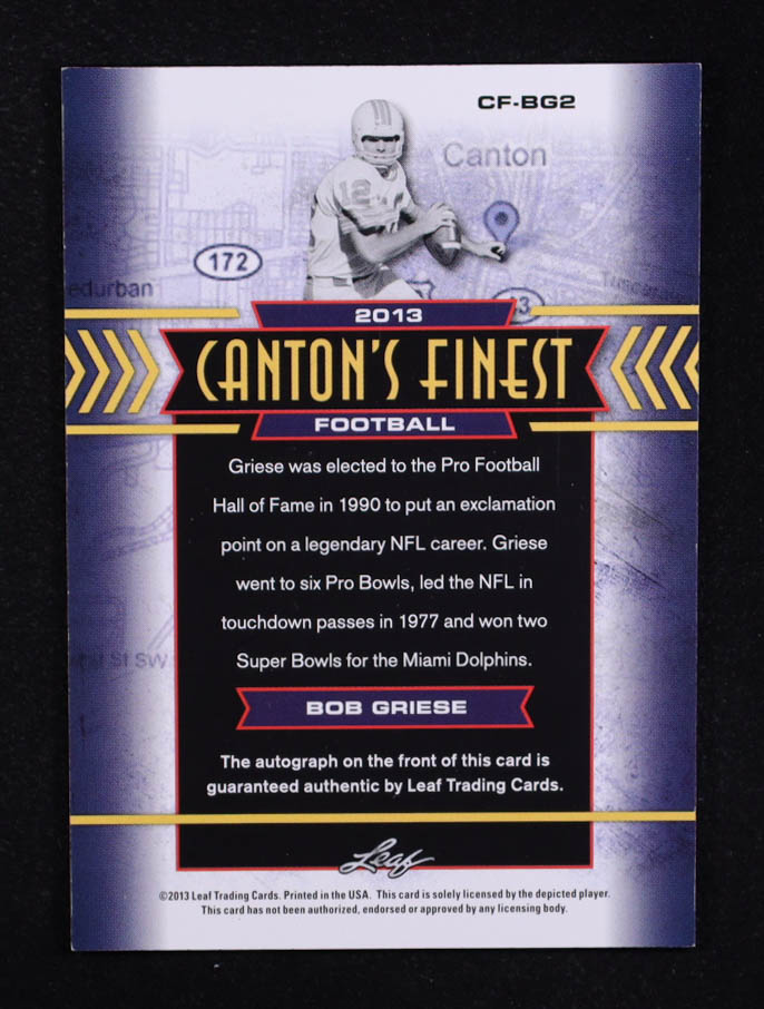 Bob Griese 2013 Leaf Sport Heroes Canton's Finest Auto #CF-BG2 #05/25