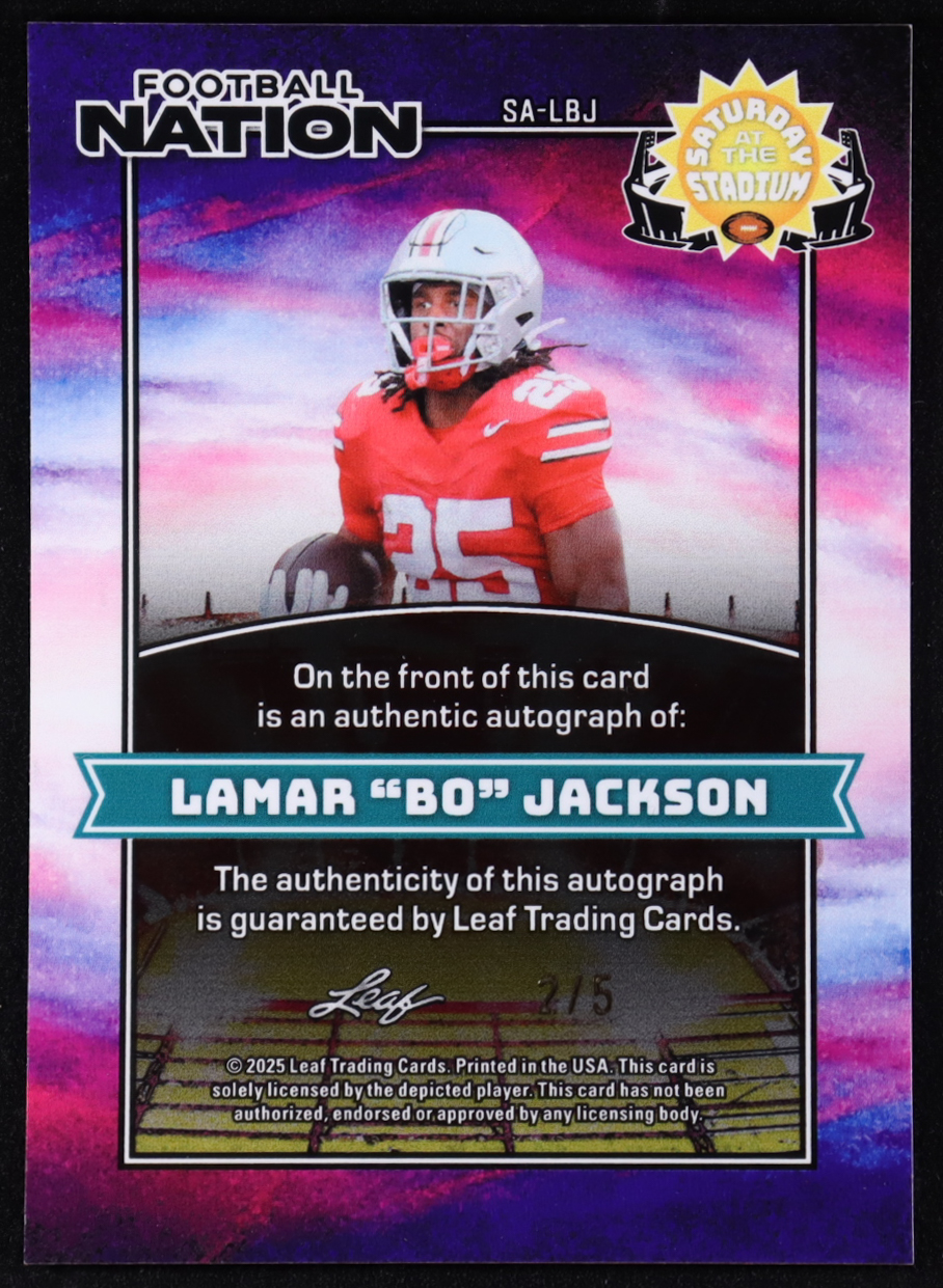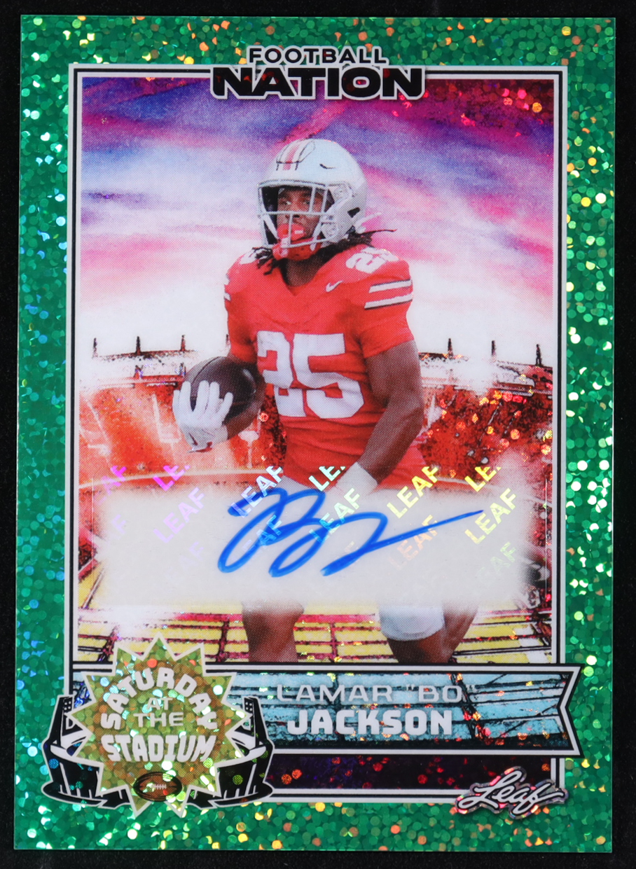 Lamar "Bo" Jackson 2025 Leaf Football Nation Saturday at the Stadium Autographs Green Sparkle #SA-LBJ #2/5 RC