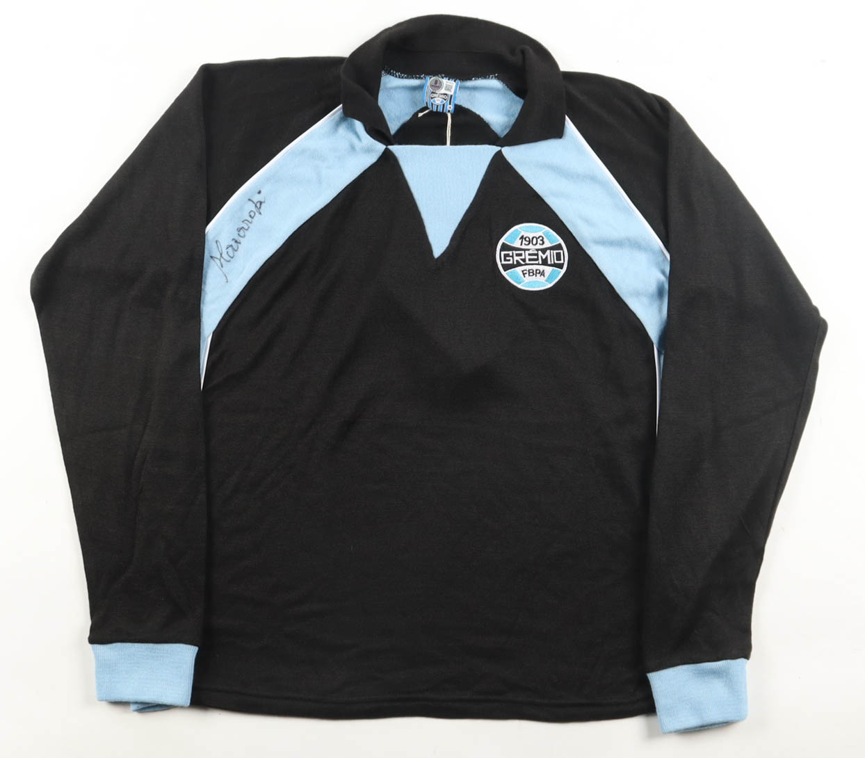 Oldoni Sports jersey with everything sewn and pressed on, size M. Hand-signed by Mazaropi (Gremio FBPA).