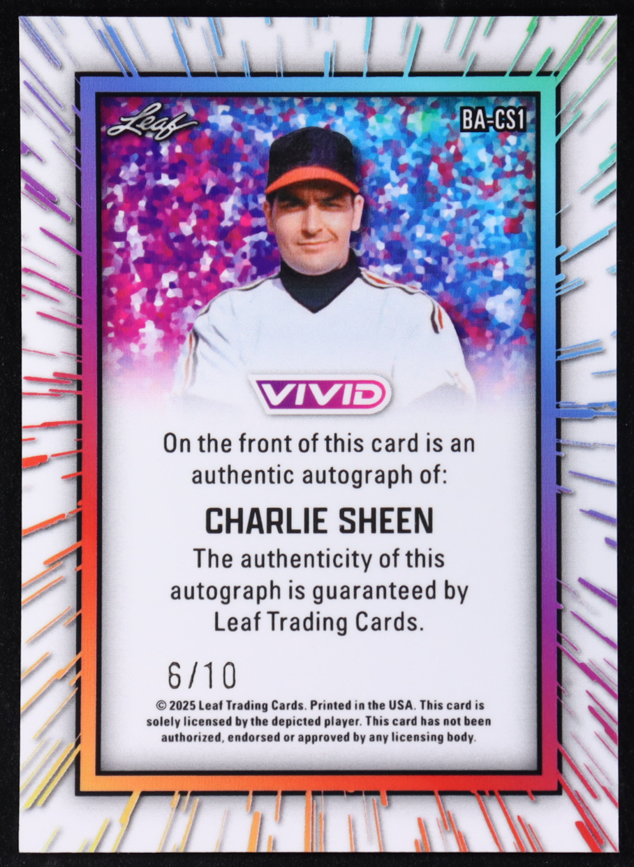 Charlie Sheen 2025 Leaf Vivid Baseball Teal Laser Autograph #BA-CS1 #6/10