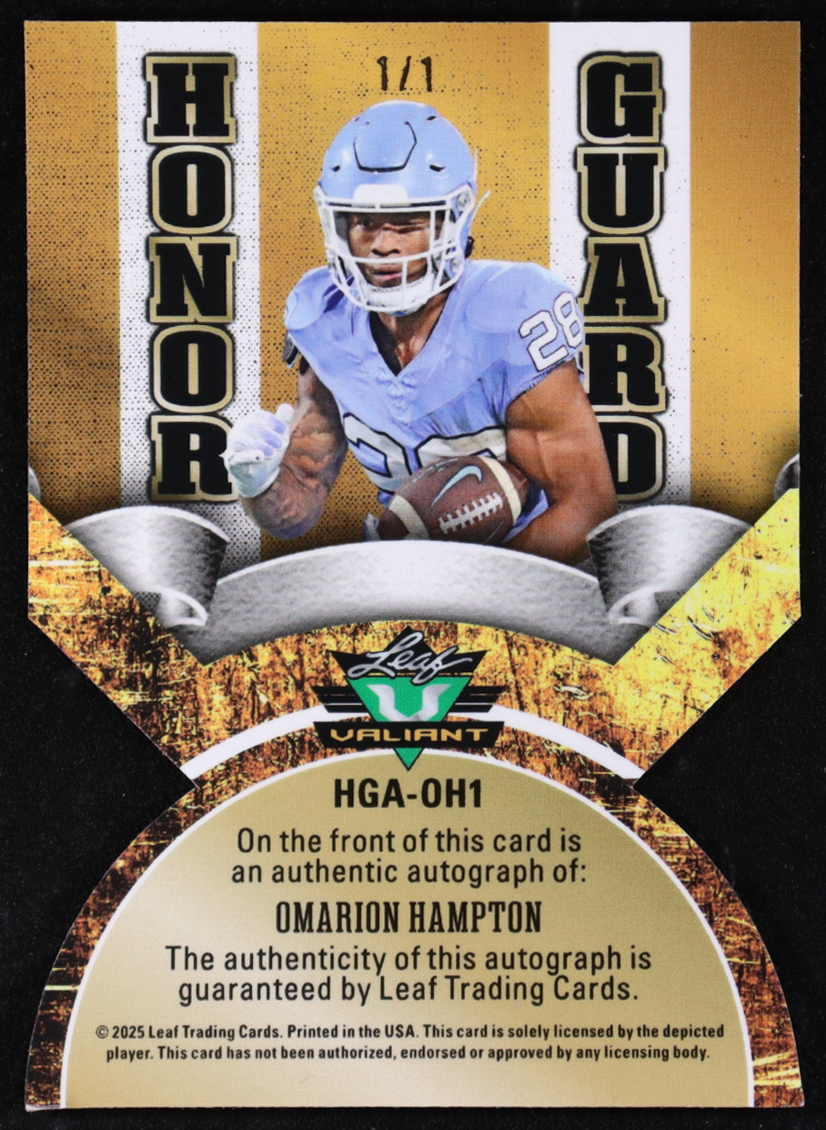 Omarion Hampton 2025 Leaf Valiant Honor Guard Die-Cut Silver Crystal Autograph #HGA-OH1 #1/1 RC