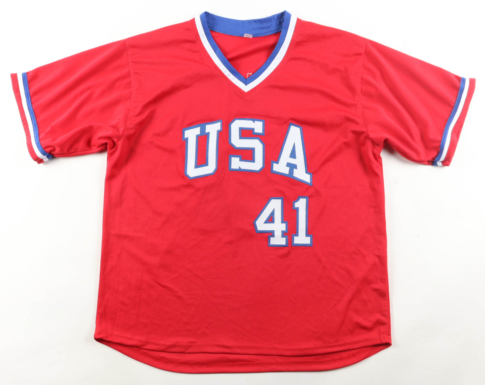 Custom jersey with everything sewn on, size XL. Hand signed by Mark McGwire (Team USA).